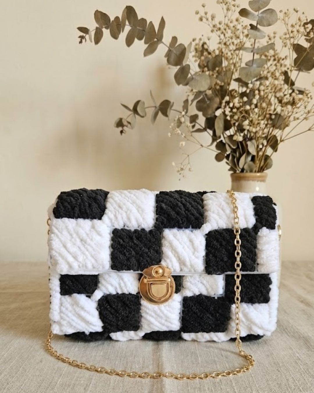 Checkered Chenille Sling Bag